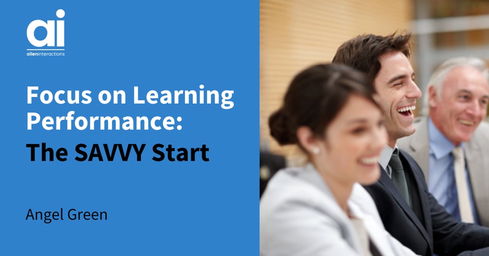 In a recent Iterations video blog, Richard Sites and I discussed the SAVVY Start. We chose this topic because after making the rounds to a few ASTD chapters and conferences, it is apparent the SAVVY Start strikes a chord with our audience.